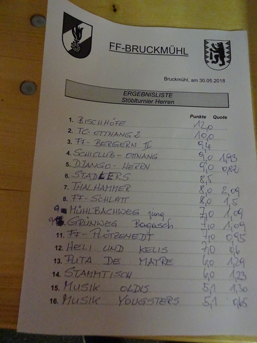 Ergebniss Stöblturnier